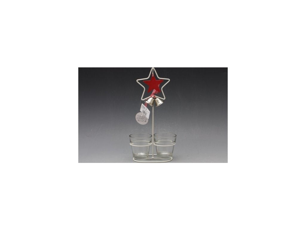 Kovový svícen s dvěma skly na svíčku, barva bílá. Svícen: výška 28 cm, sklo: výška 6,5 cm, průměr 6,5 cm.
